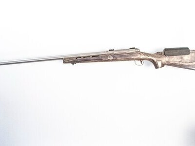 The Savage Model 12 in .308 with a bull barrel is a heavy, single-shot precision rifle built for accuracy. Its robust barrel and AccuTrigger system make it ideal for target shooting or varmint hunting, offering excellent stability and consistency.